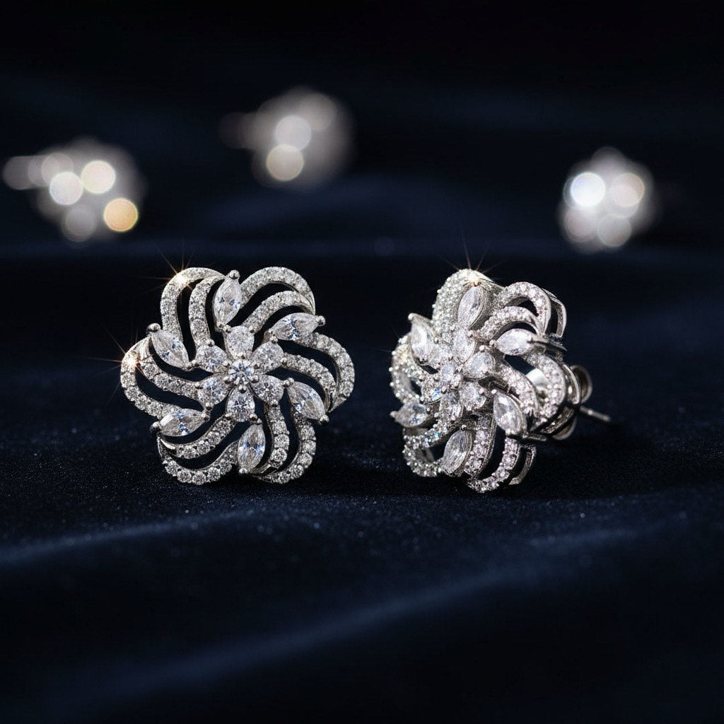 925 Silver Floral Zircon Stud Earrings | Sparkling Statement Earrings