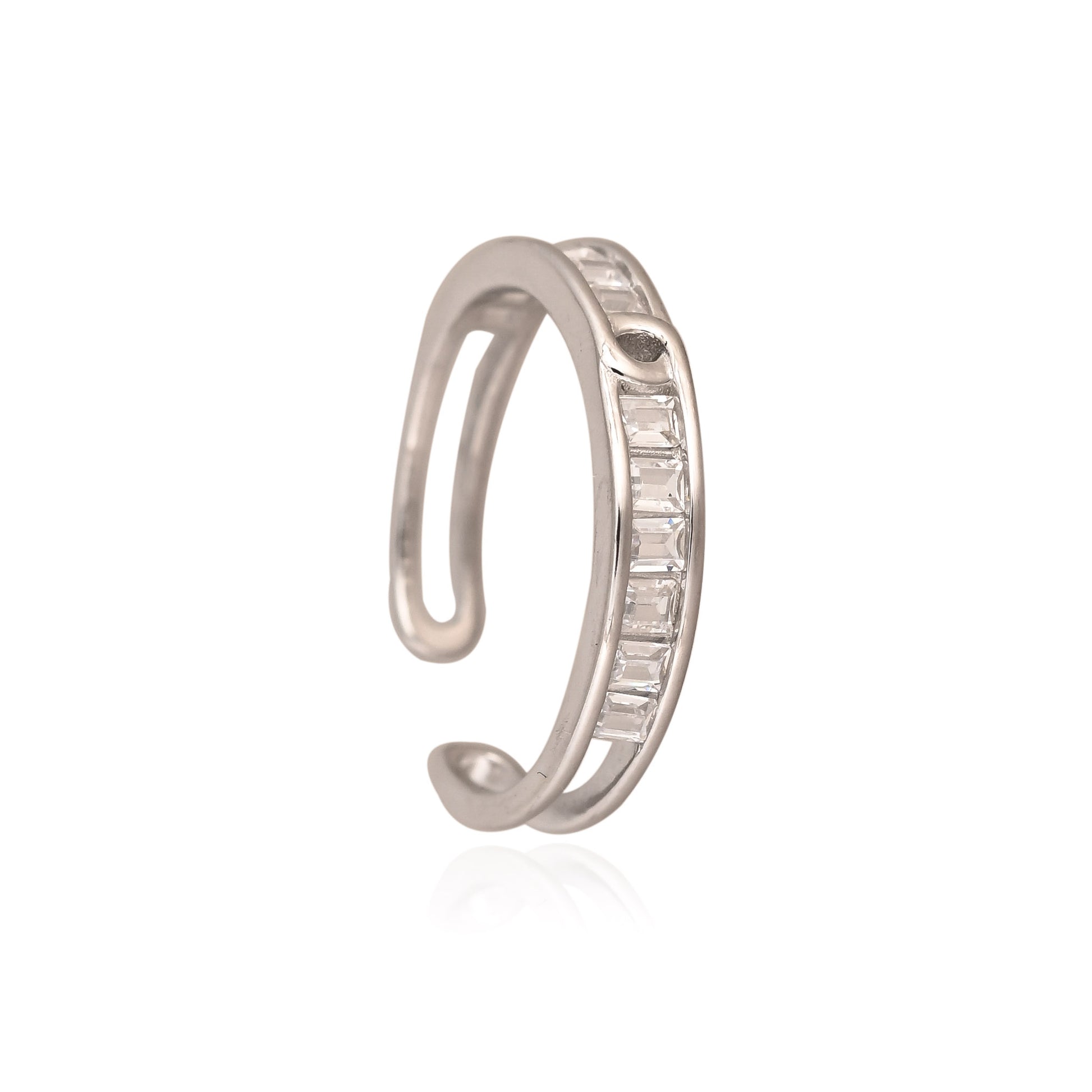 Add a touch of timeless elegance to your look with this Elegant Silver Baguette Adjustable Ring from Rasvi Jewels. Crafted in high-quality silver, this open ring features sparkling baguette-cut stones set in a sleek, modern band. Its adjustable design ensures a comfortable fit for all finger sizes, making it the perfect everyday essential or gift for someone special.