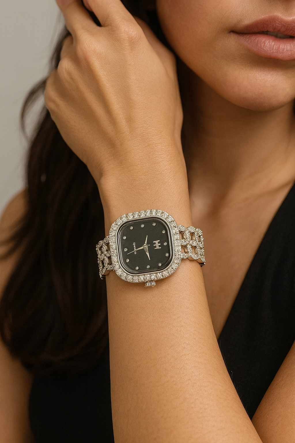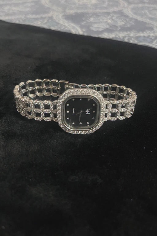Elegant Silver Ladies Watch | Black Dial | Premium Chain-Link Design