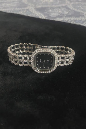 Featuring a smooth black dial paired with a unique silver chain-link strap, this watch blends modern minimalism with classic charm.